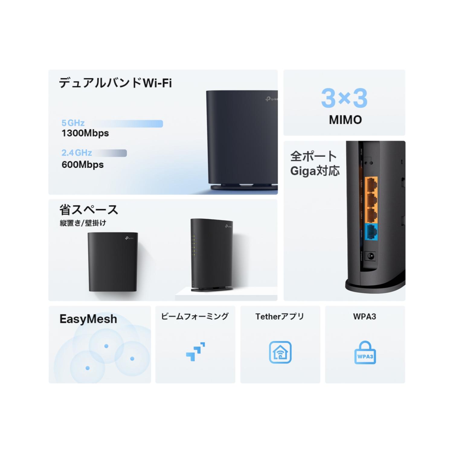 | 通信速度 | 5GHz:1300Mbps 2.4GHz:600 Mbps |